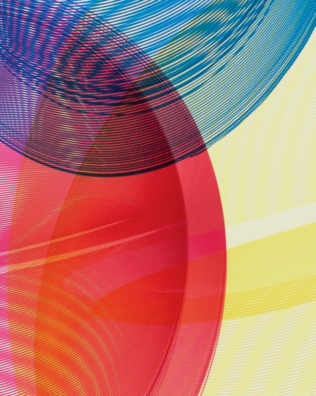 Artist, inventor, author and Holocaust survivor, Moscovich patented his Harmonograph in 1967 and slowly honed the precise techniques required to master his innovative "cybernetic" approach to drawing. The machine produces two-dimensional oscillations which mathematicians refer to as Lissajous figures. Through variations of color, shape and composition, Moscovich was able to achieve a striking visual diversity in his images. The drawing process was time-consuming and required extensive experimentation to execute each concept successfully. For this reason, the artist never produced copies of his works.