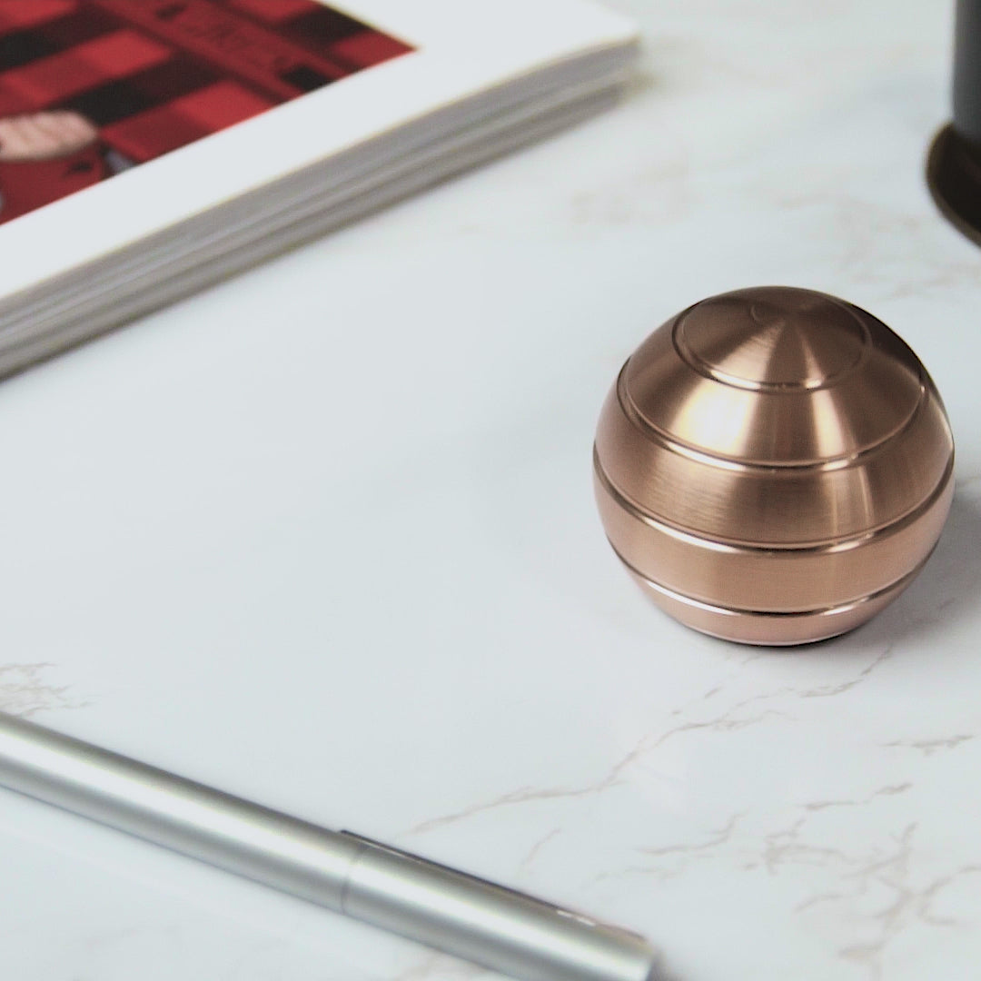 Mezmoglobe is one of the most captivating desk toys ever designed. When stationary, it appears to be a simple metal orb engraved with a helix but if you give the globe a spin, the aerospace-grade aluminum surface seems to magically melt into liquid metal. The helix comes to life, flowing outward like ripples on a pond. The visual illusion is deeply hypnotizing and this kinetic sculpture has quickly become one of the most eye-catching items in our showroom.